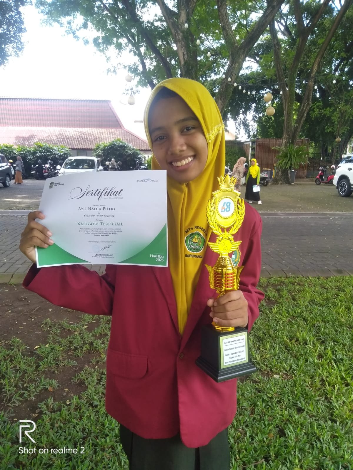 BANYUWANGI – Peringatan Hari Ibu tahun ini menjadi momen spesial bagi Ayu Nadia Putri. Siswa MTsN 4 Banyuwangi tersebut sukses meraih gelar juara dalam kategori Surat Terdetail pada ajang Lomba Menulis Surat ke Bupati Banyuwangi yang diselenggarakan oleh Jawa Pos Radar Banyuwangi.